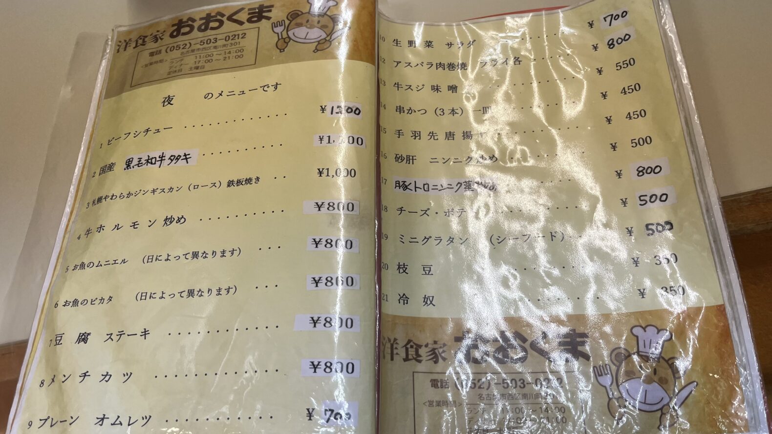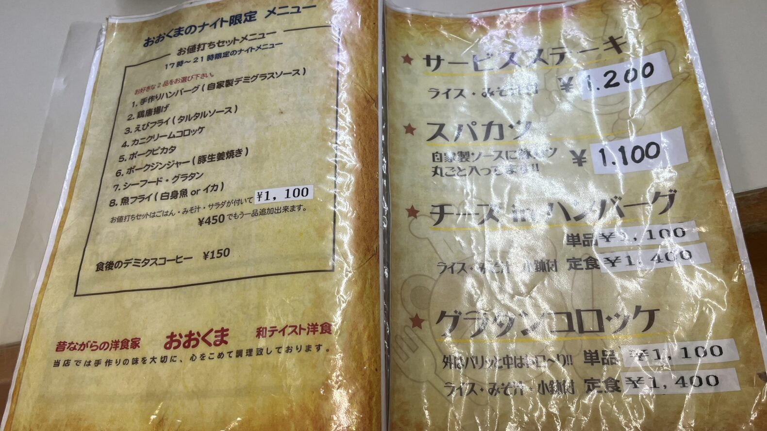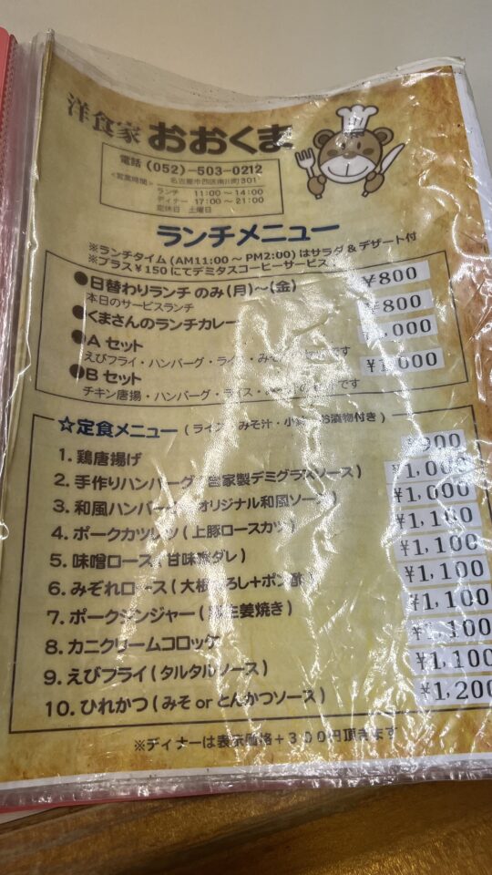昔ながらの洋食家おおくまのお値打ちセットメニュー【上小田井・庄内緑地公園】