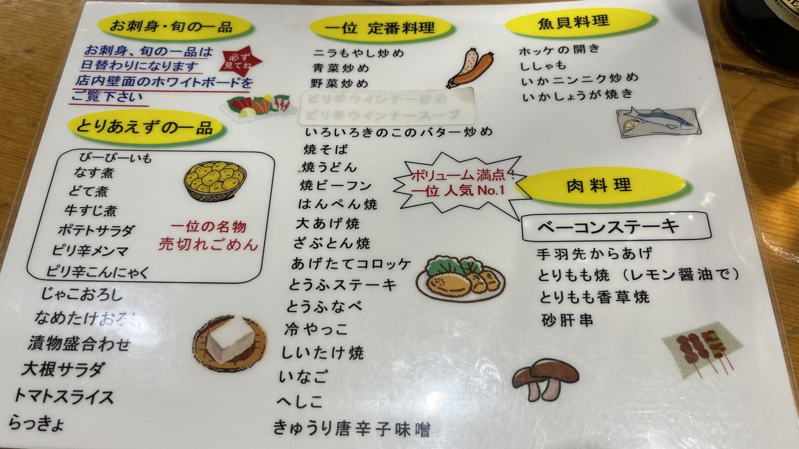 いちい は、厚切りベーコンステーキやピーピー芋などお酒によく合うおつまみの数々が揃った 地域に愛された昔ながらの居酒屋。