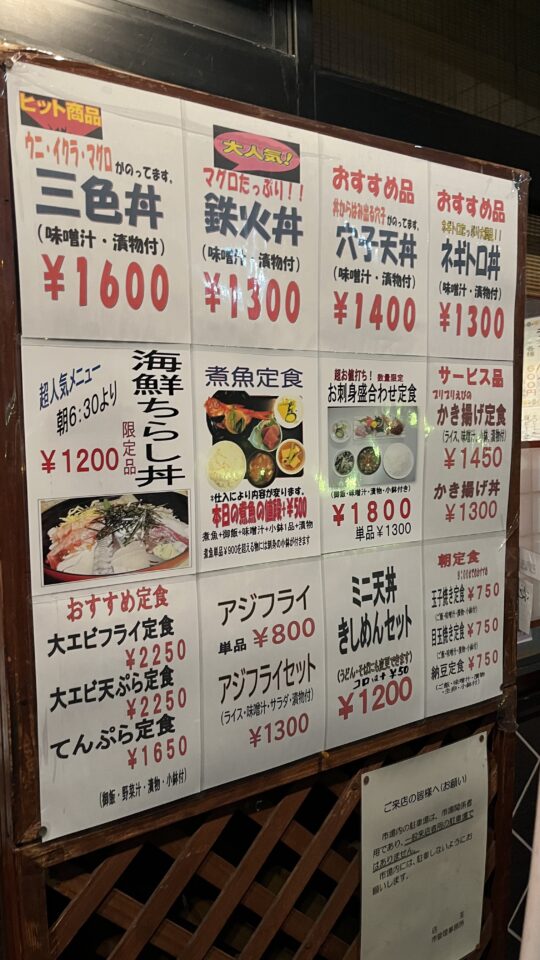 私は人気メニューの海鮮ちらし丼を食べたんだけど、朝6時半から提供されていて、注文したらものすごい速さで提供されるしネタもたっぷり乗っていて美味しかったよ~!