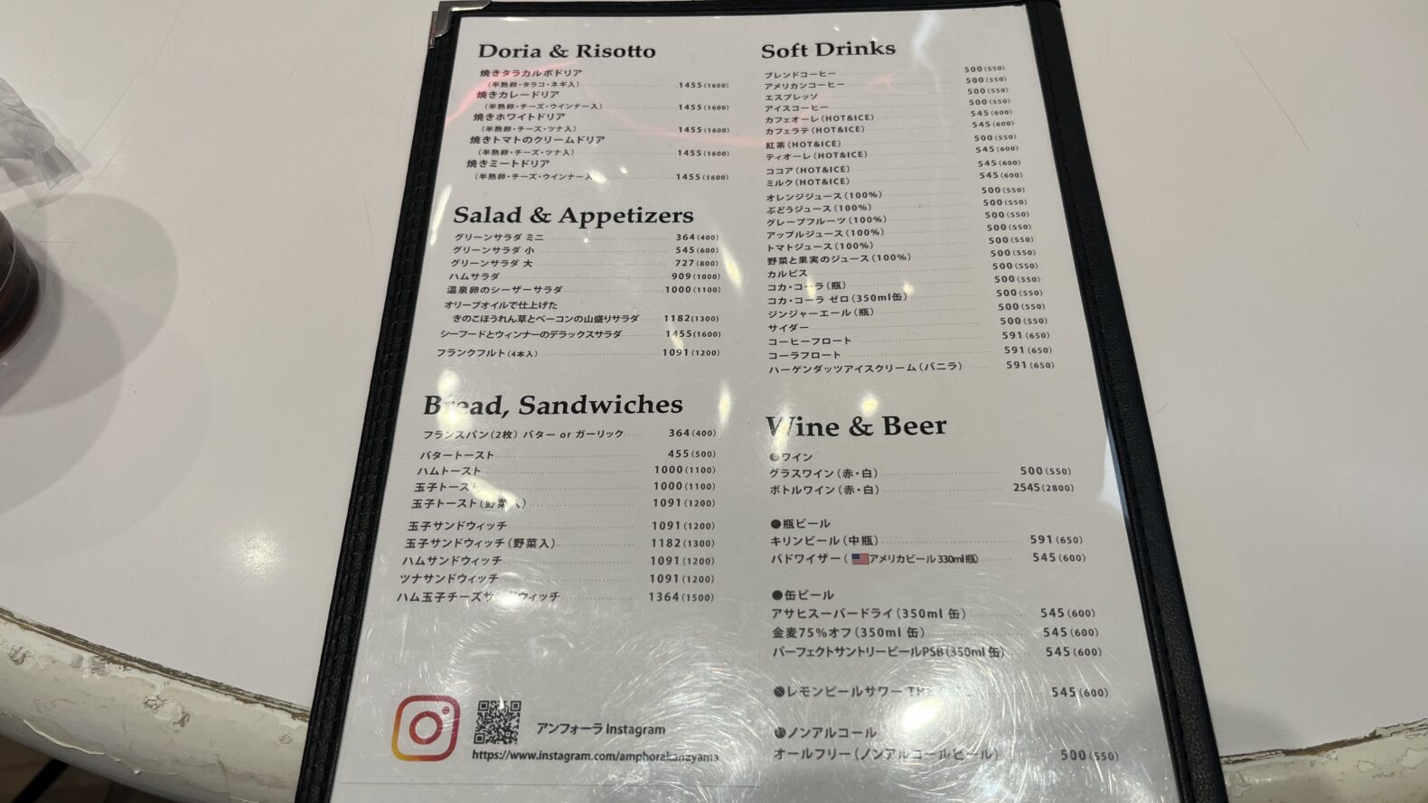 アンフォーラのメニュー