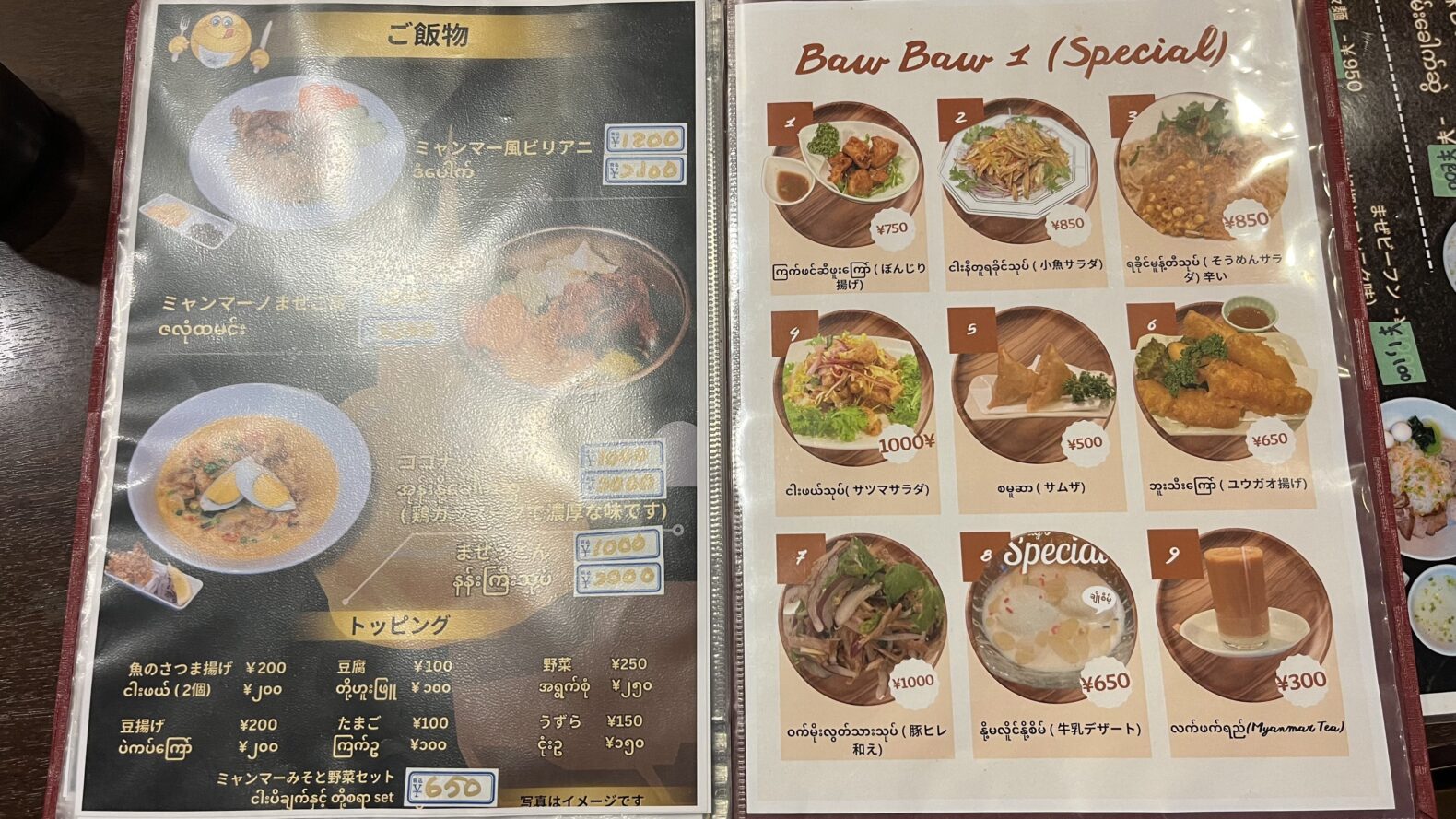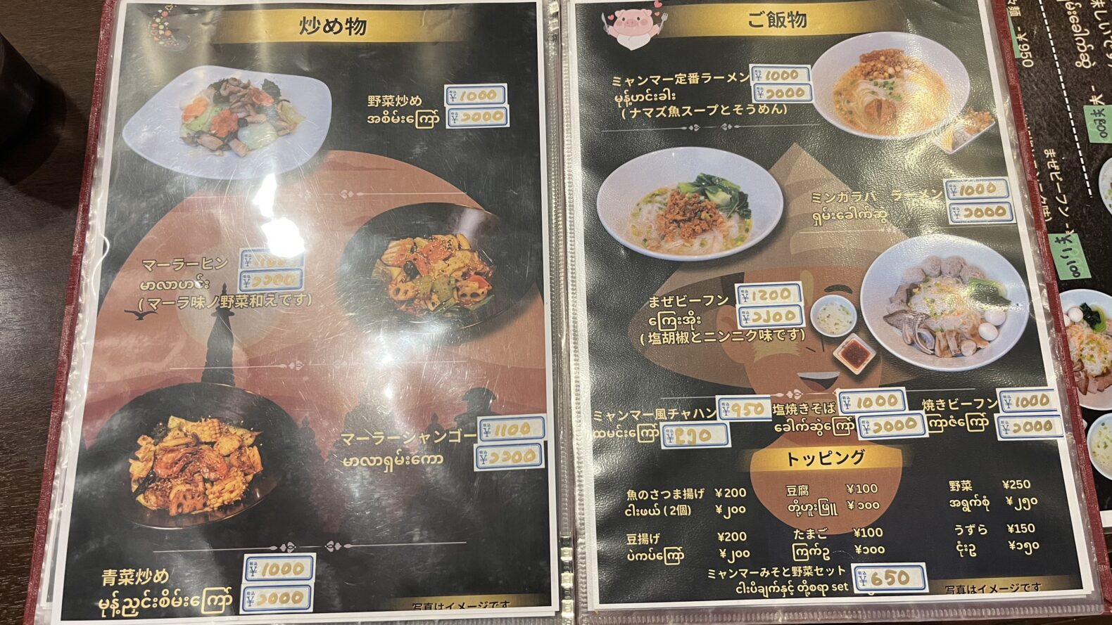私はミンガラバラーメンっていうラーメンを食べたんだけど、麺がすごくモチモチだしスープが優しい風味で美味しかったよ!