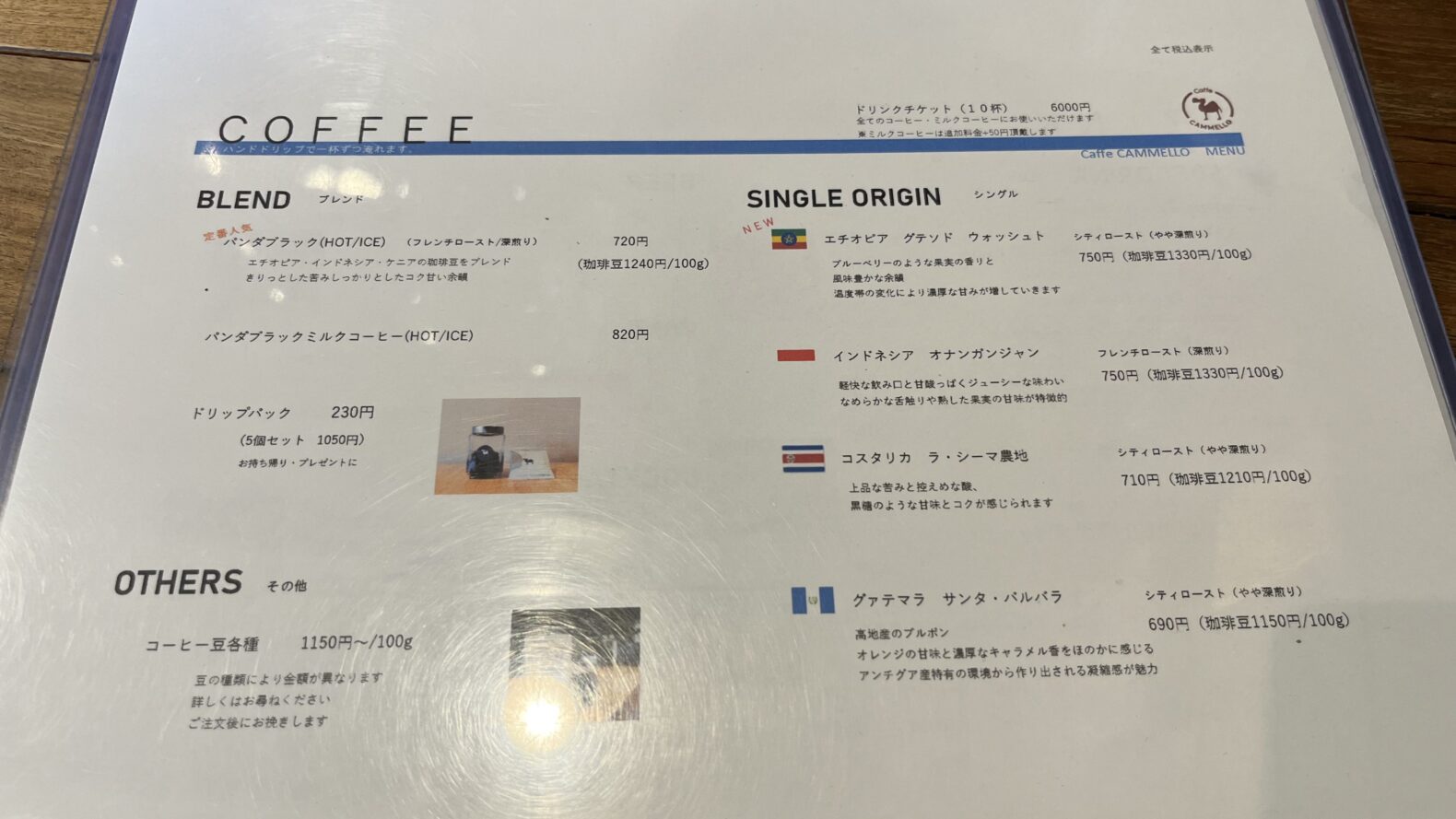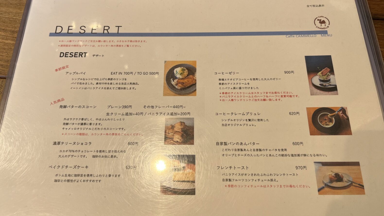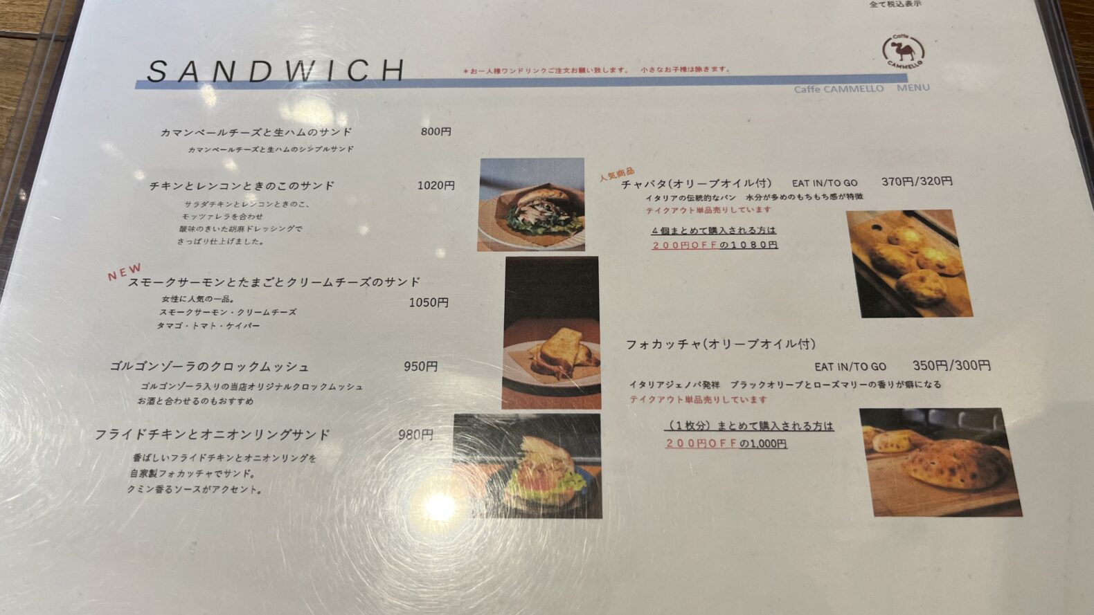 CaffeCAMMELLOのメニュー