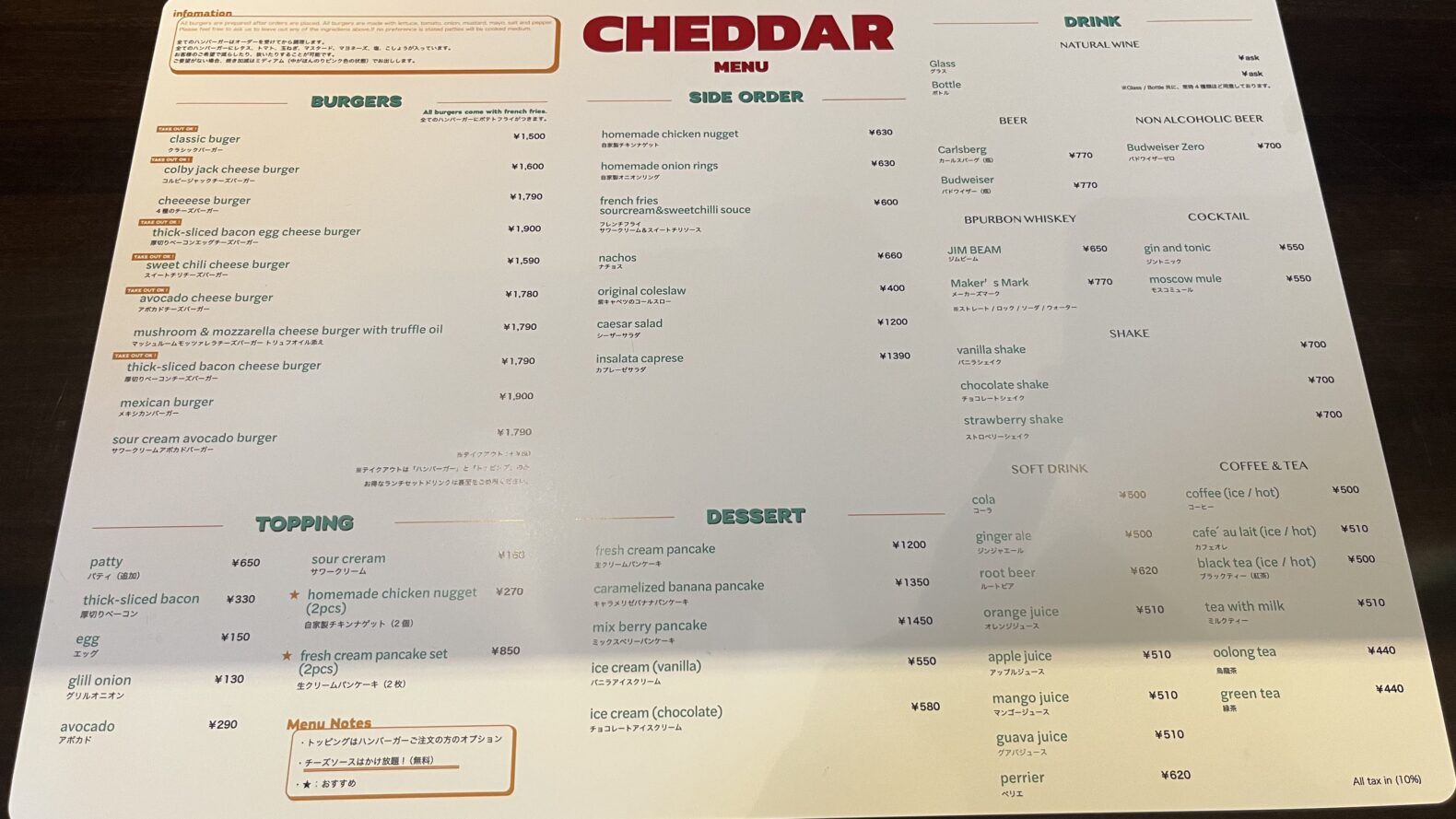 CHEDDARは、名古屋市営地下鉄で最も利用者数が多い路線、東山線の東山公園駅から少し歩いた場所に2025年12月20日にオープンした、ハンバーガーとパンケーキの専門店なんだね~!