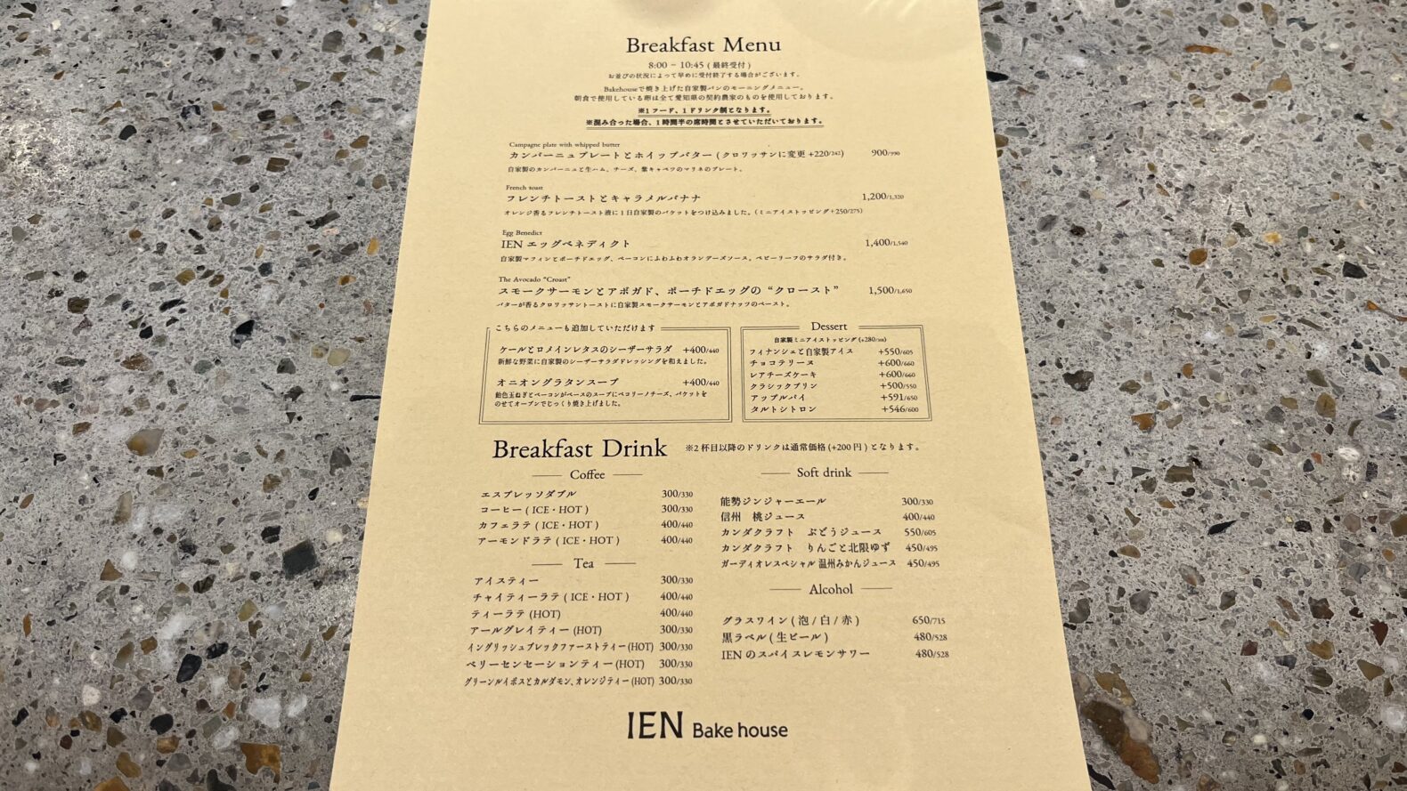 IEN Bake houseのメニュー