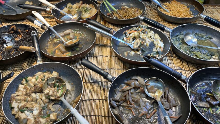 カネソウは、フライパンに盛られた様々な種類のおかずをテイクアウトできる惣菜専門店。
