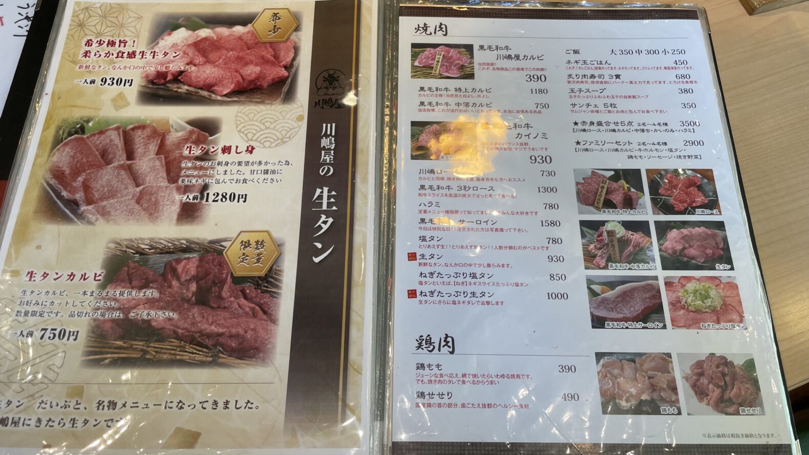 川嶋屋のメニュー