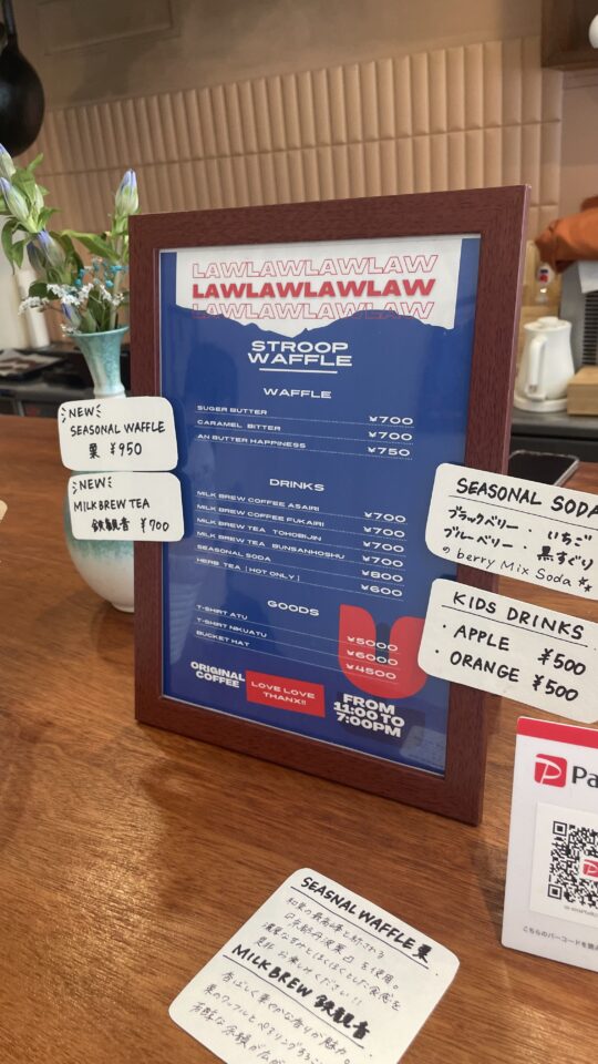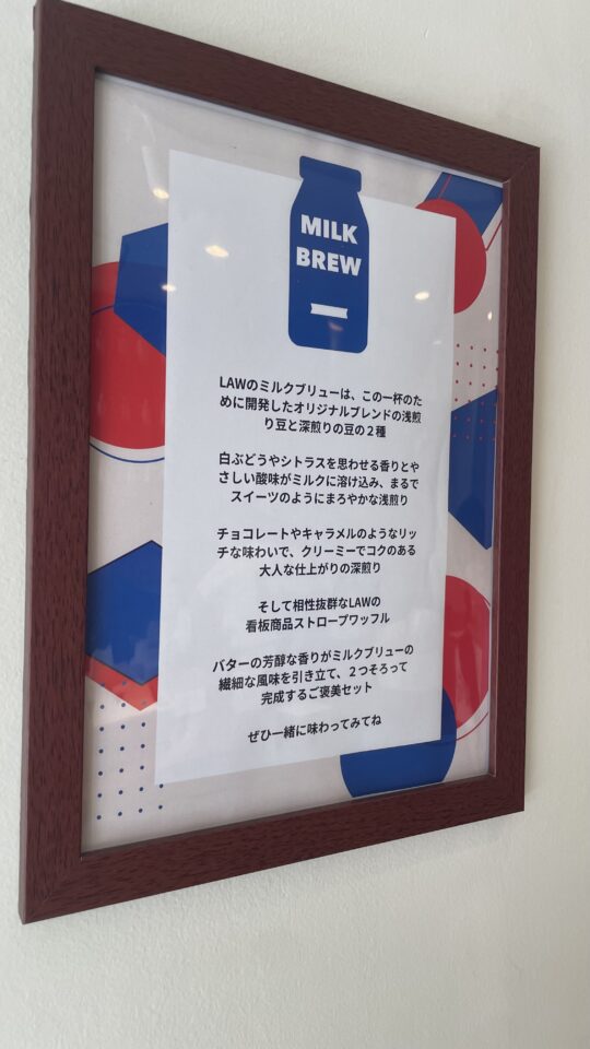 LAWは、名古屋市営地下鉄東山線の新栄駅から少し歩いた場所に2025年6月中旬頃にオープンした、オランダの伝統菓子ストロープワッフルとミルクブリュードリンクの専門店なんだね!