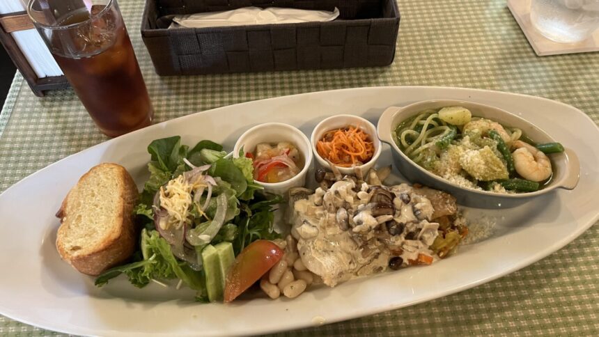 メインもパスタも一緒に盛られた、大きなプレートランチだよ。地域に愛されたお店で、大満足の一皿に出会ってね✨️ pic.twitter.com/WoKtqvk74K