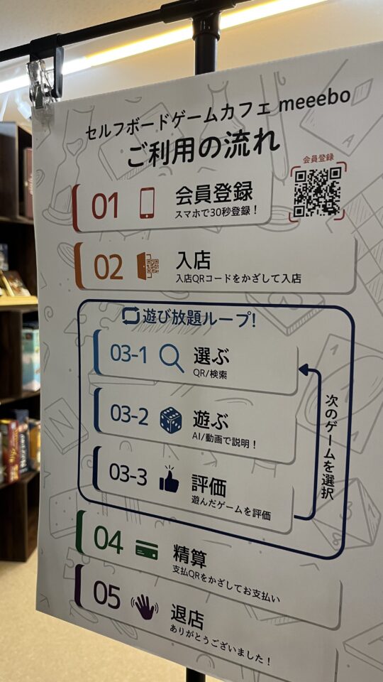 セルフボードゲームカフェmeeeboは、名古屋市営地下鉄名城線の矢場町駅から少し歩いた場所に2025年12月上旬頃にオープンした、セルフ形式で楽しめる無人のボードゲームカフェなんだね!