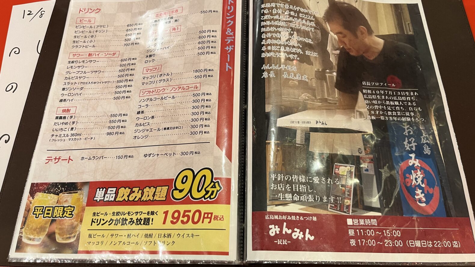 みんみんのメニュー