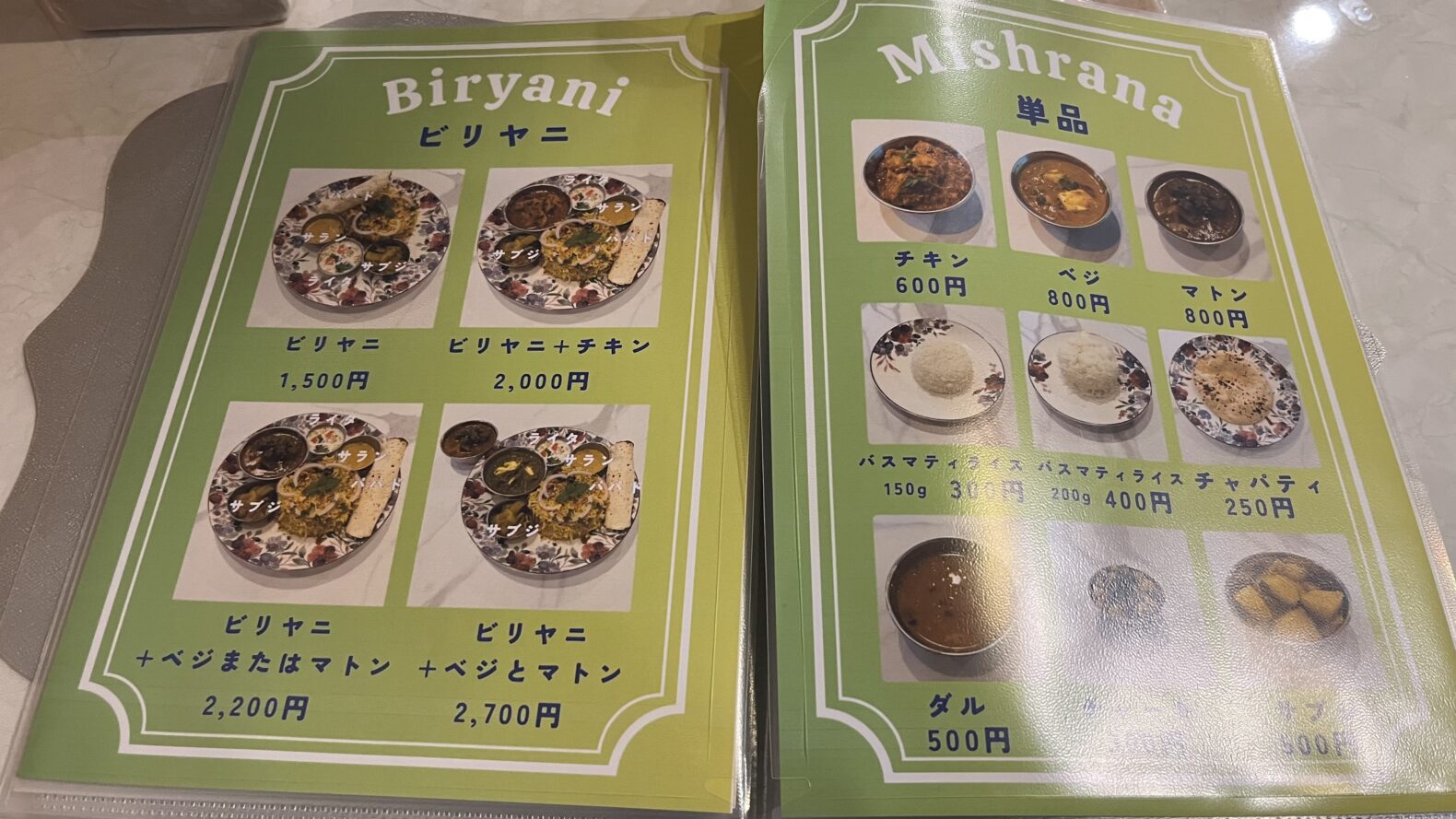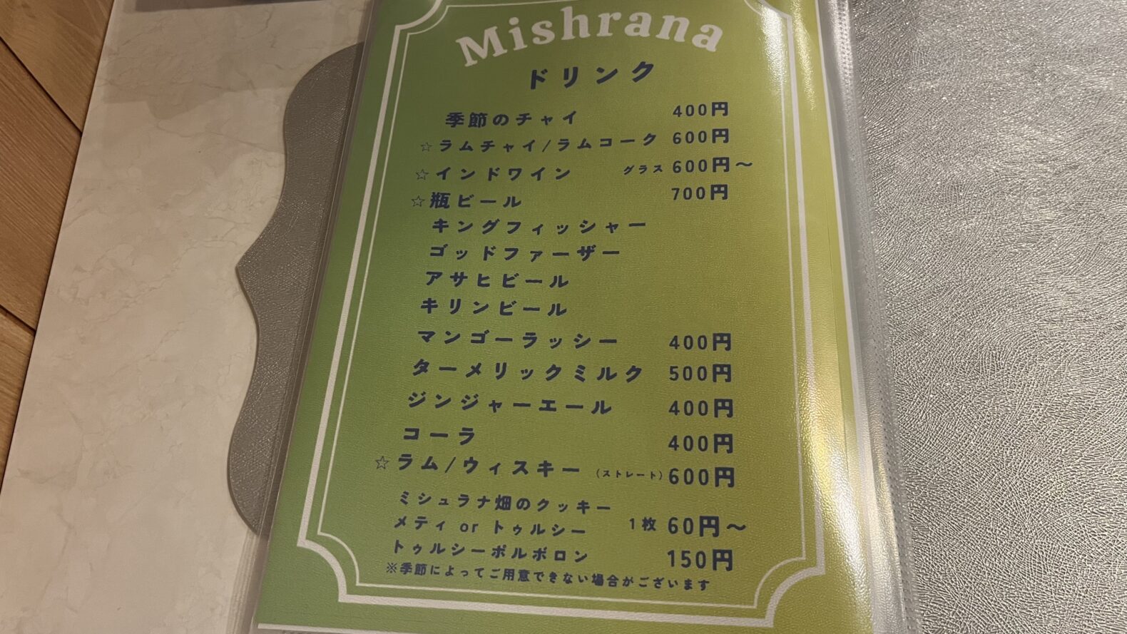 ミシュラナのメニュー