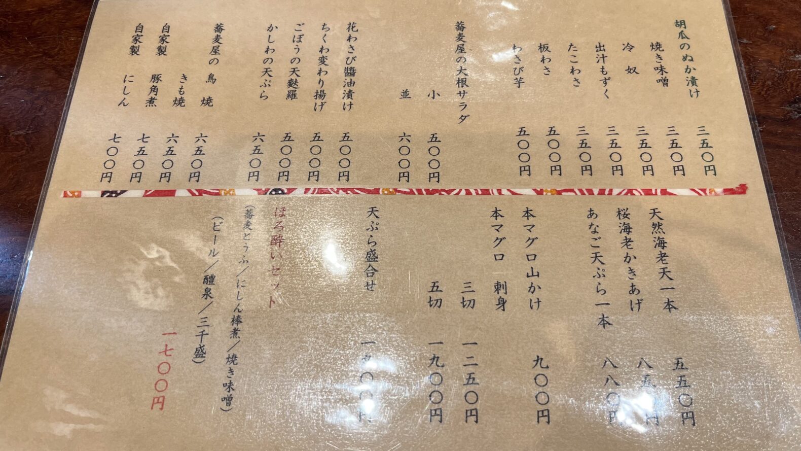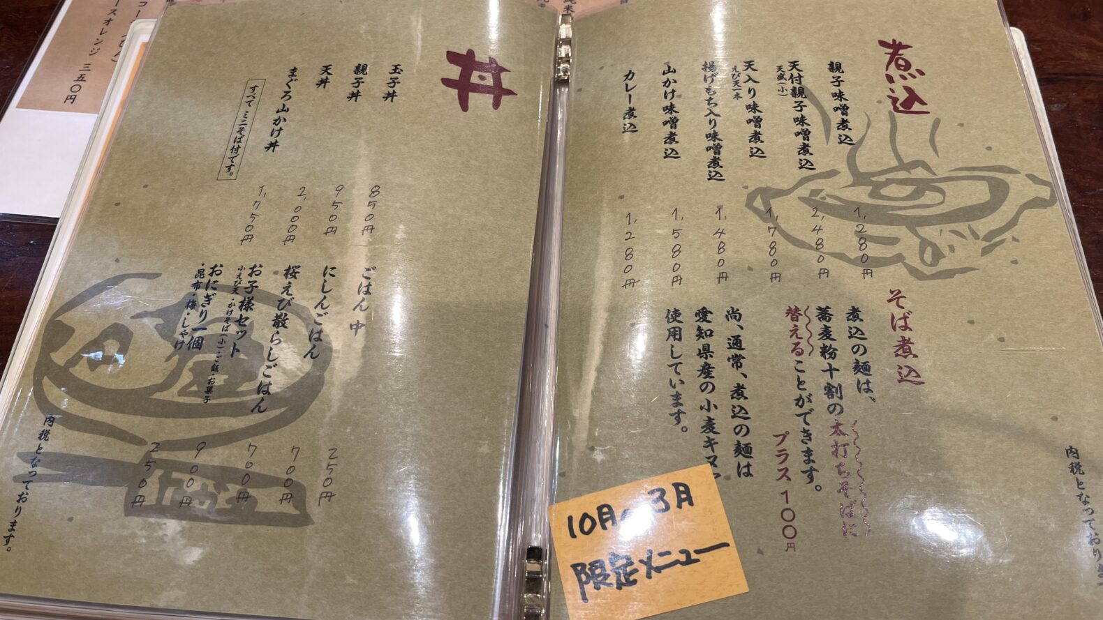 ながやのメニュー
