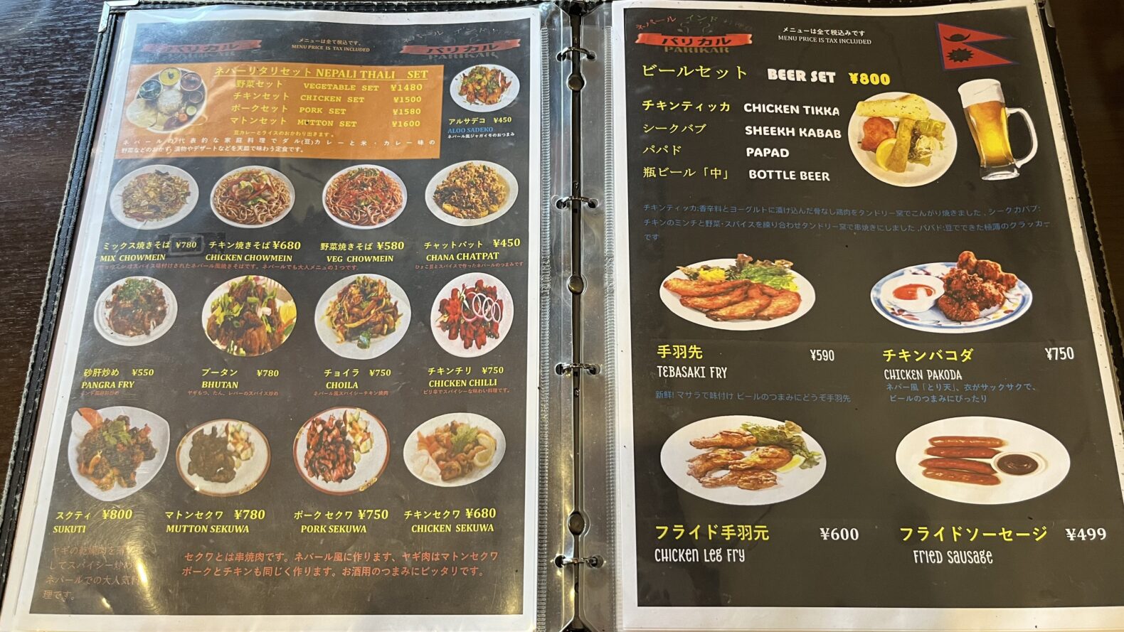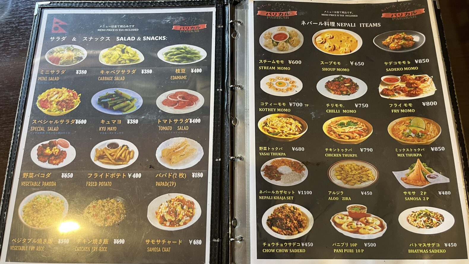 パリカルのメニュー