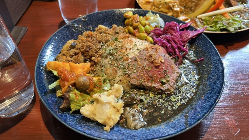私はランチタイムに2種あいがけカレーを食べたんだけど、ギネスビールで煮込んだカレーがとっても美味しかったし、ローストビーフとかも一緒に盛られていて豪華だったよ!