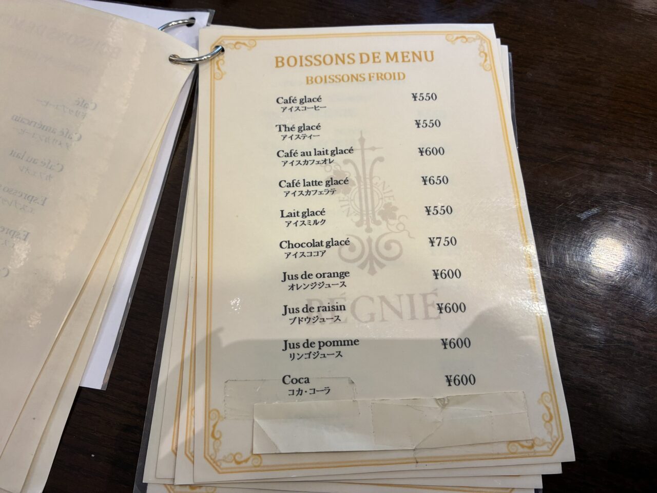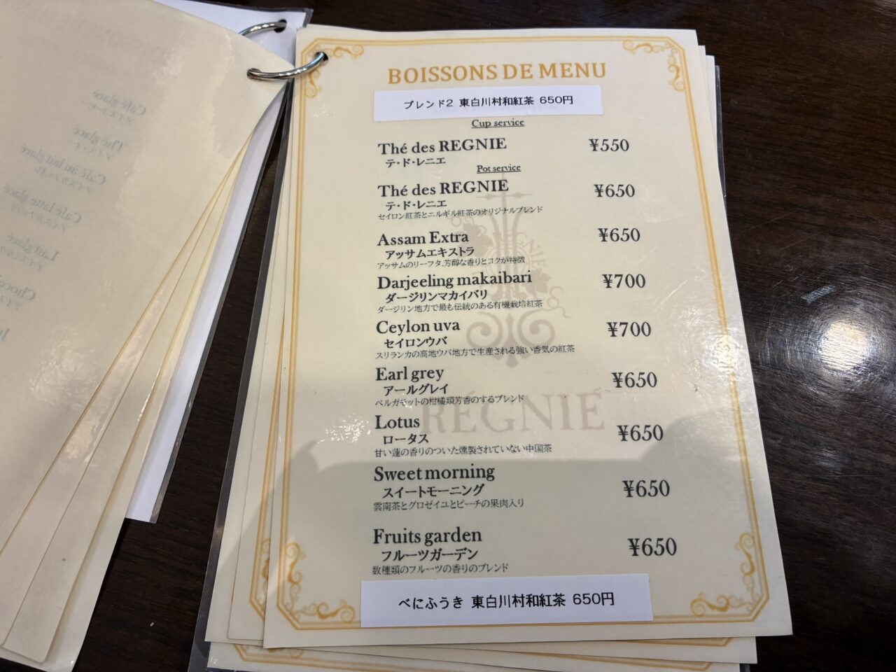 レニエのメニュー
