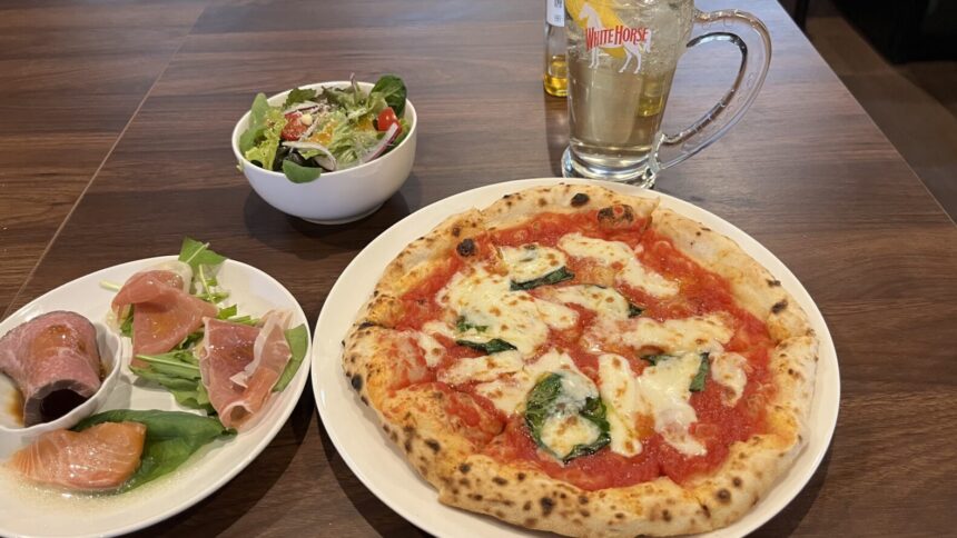 私はランチタイムに前菜とサラダとドリンクが付くCセットを食べたんだけど、注文後に1枚ずつ焼いてくれるピザは熱々でとっても本格的な味がしたし、セットドリンクでお酒も選べるから気軽に昼呑みができて最高だったよ~!