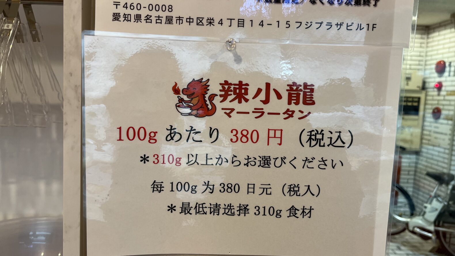 辣小龍麻辣湯は、名古屋市営地下鉄名城線や東山線の栄駅から少し歩いた、中日ビルの裏手くらいに2026年2月中旬くらいにオープンした、冷蔵棚から量り売りで楽しめるタイプのマーラータンの専門店なんだね~!