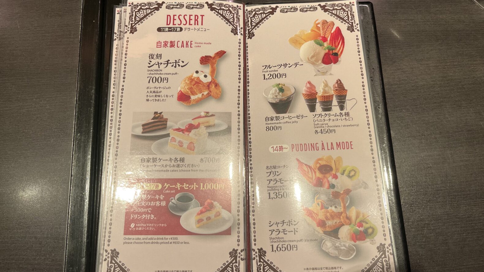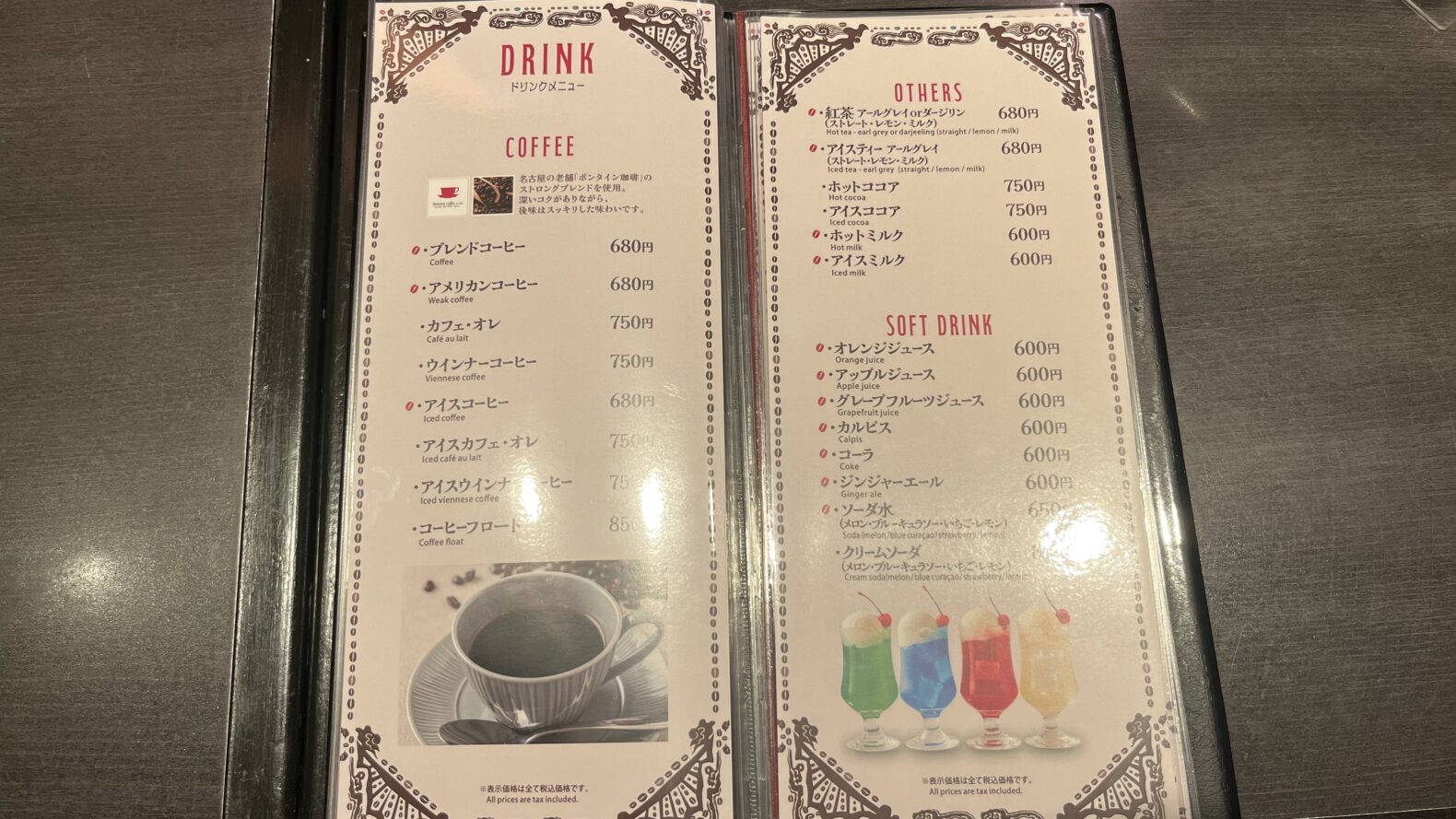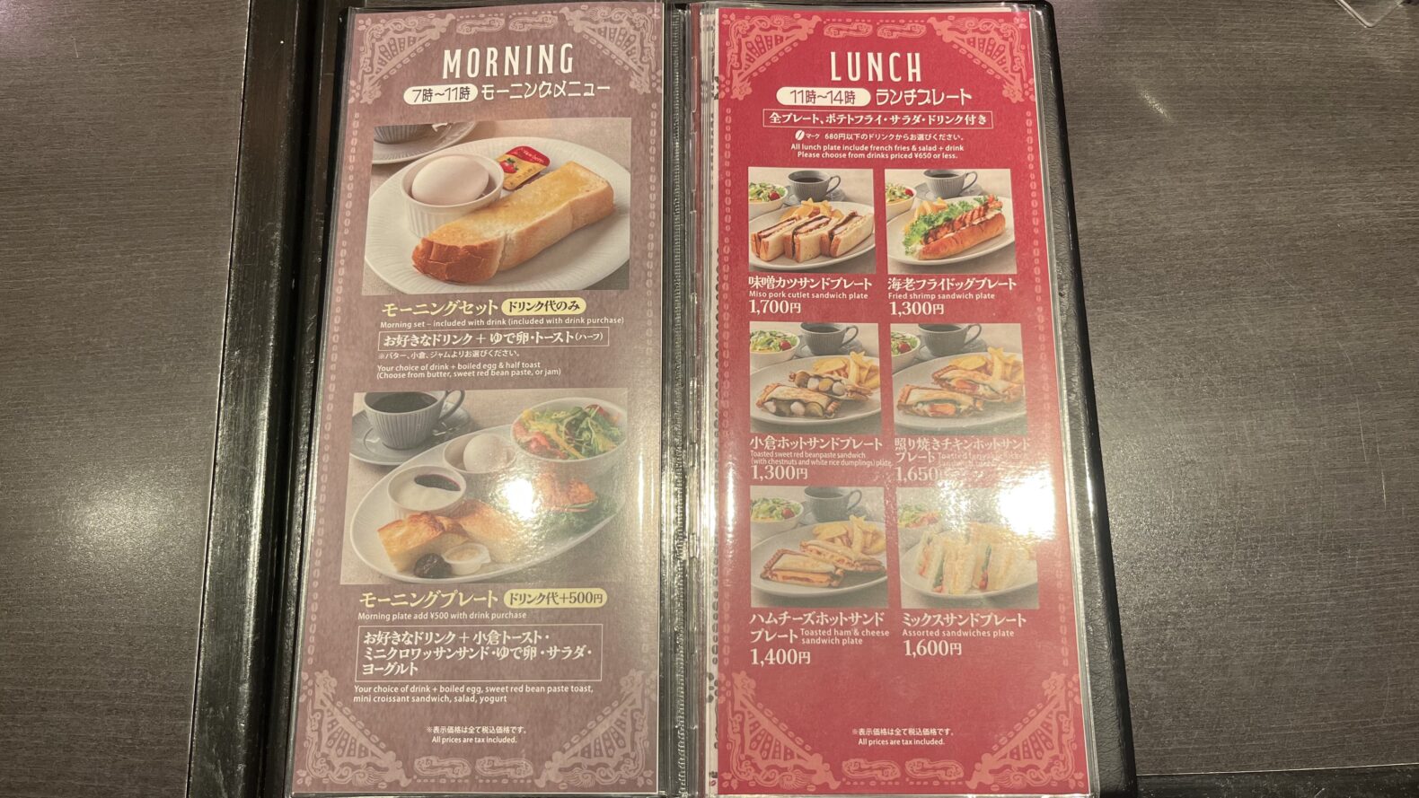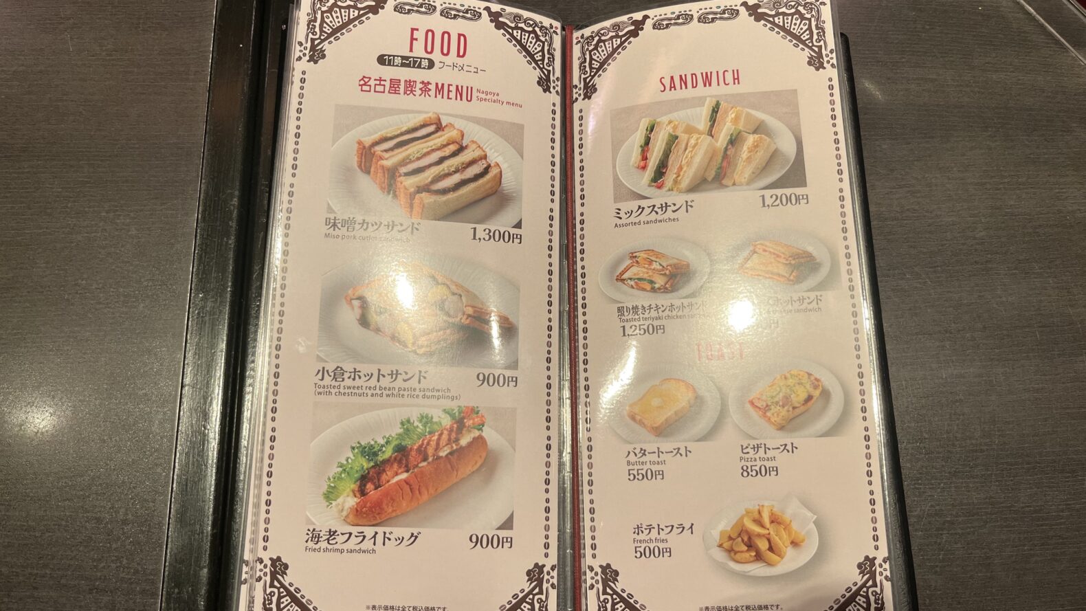 名古屋の喫茶店ではお馴染みの軽食メニューがずらり