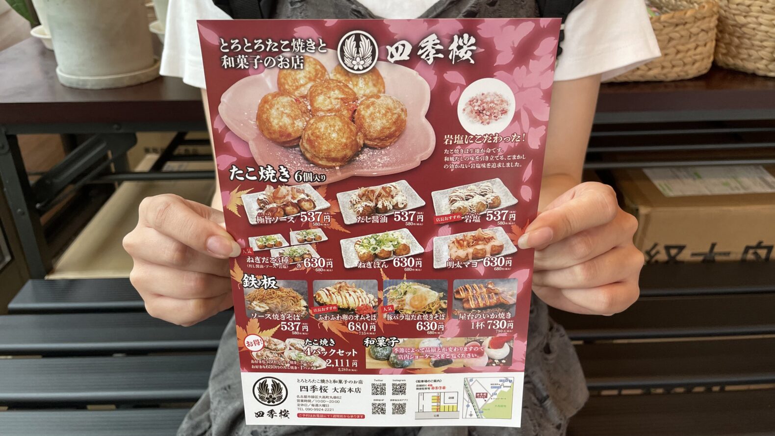 四季桜は、JR大高駅から少し歩いた場所にある、たこ焼きや焼きそば・和菓子なども買えるテイクアウト専門店なんだね!