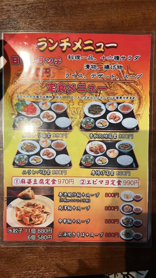 小龍門のメニュー