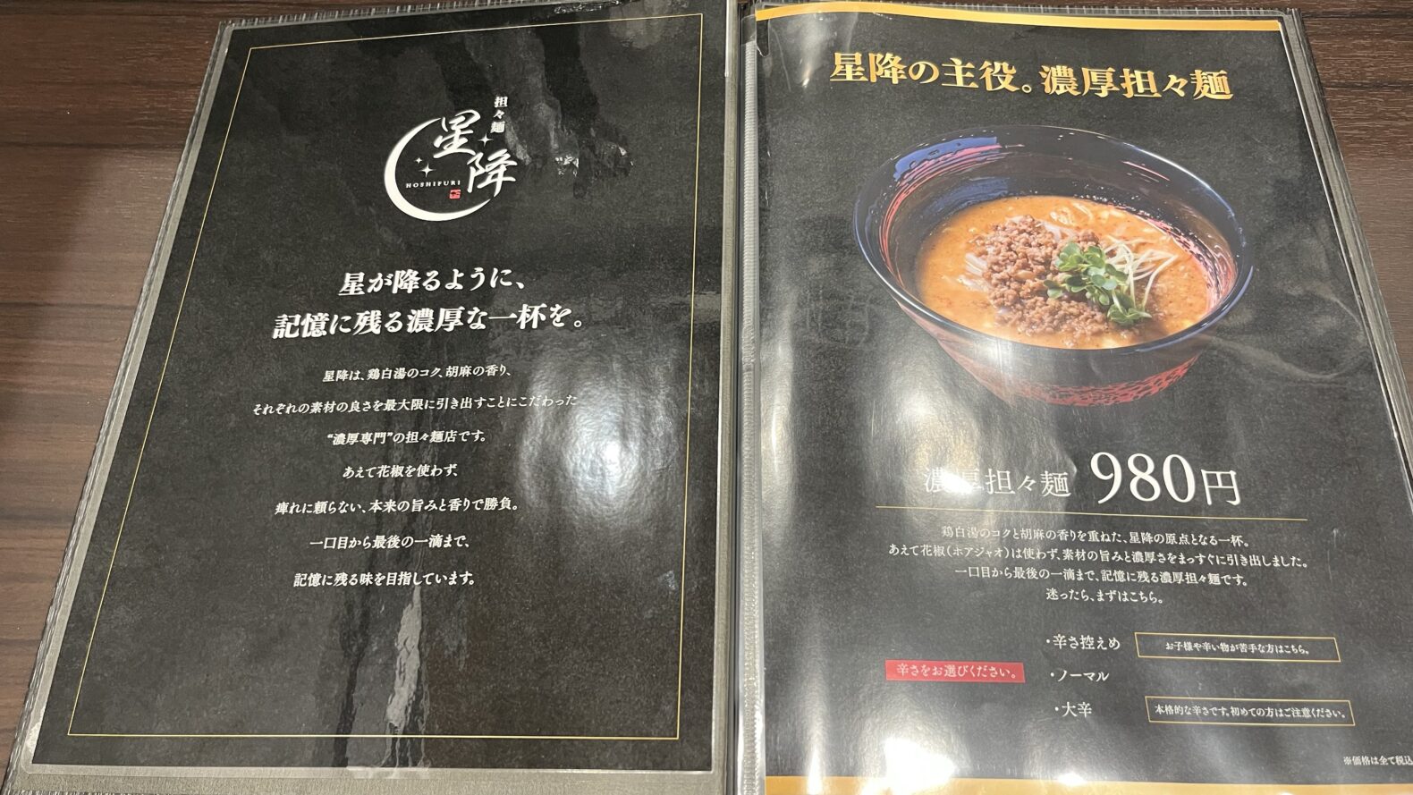 和風担々麺 星降のメニュー