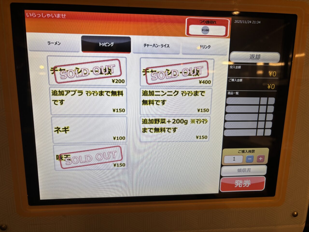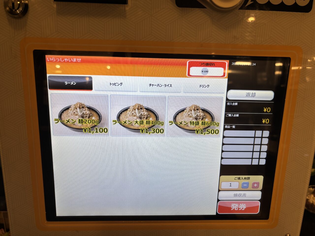 注文は野菜の量・背脂の量・味の濃さ・ニンニクの量が選べるよ~!